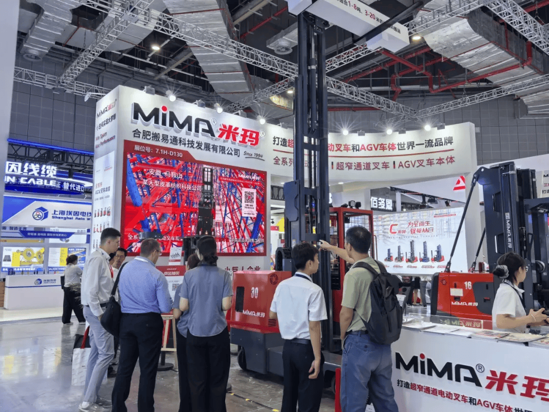 合肥搬易通(MiMA米玛)本次展出的窄通道型叉车系列,凭借诸多卓越特质,成为全场瞩目的焦点。该系列产品实现了在狭小空间内进行高位仓储作业,支持长尺寸物料灵活转运,并可完成库内与库外全流程搬运任务。其应用范围广泛,覆盖电商物流、医药运输、食品加工、汽车制造等诸多领域,依托持续创新的技术实力,为各行业客户打造高效、专业的物料搬运系统。