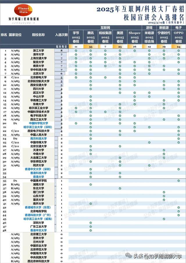腾讯、中国移动、华为三家共同选中的 20 所高校,18 所是 985,足见顶尖 985 的 “硬通货” 价值。清北、浙大、复旦等校,学科覆盖面广、科研实力雄厚,能为企业输送从技术研发到管理运营的全链条人才。以清华大学为例,其计算机、电子信息等学科的前沿研究,与腾讯的 AI、云计算,中国移动的通信技术,华为的智能终端等业务高度契合;而在通信、网络等领域,清华的信息学科又能为中国移动、华为提供智力支撑。这些高校的人才培养,从课程设置到实习实践,都深度嵌入行业发展脉络,自然成为企业的 “人才富矿”。